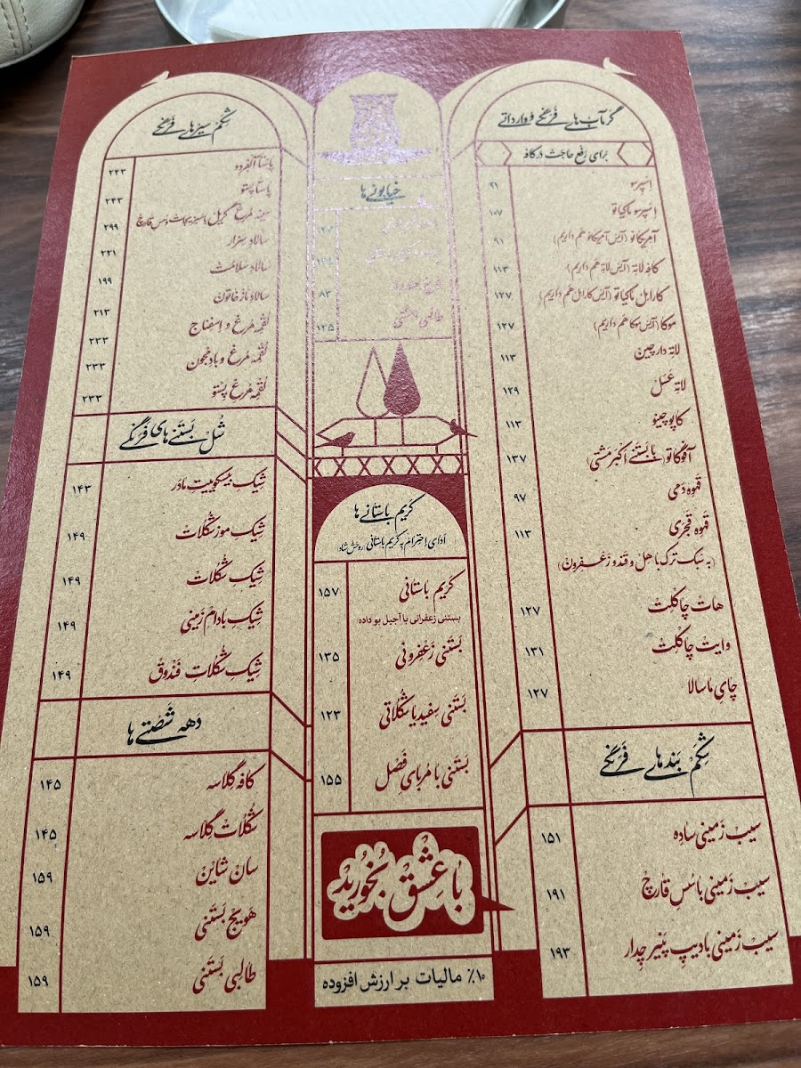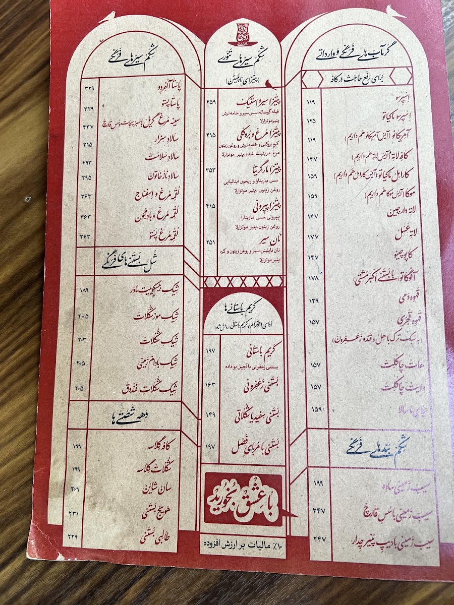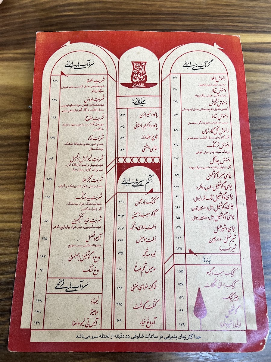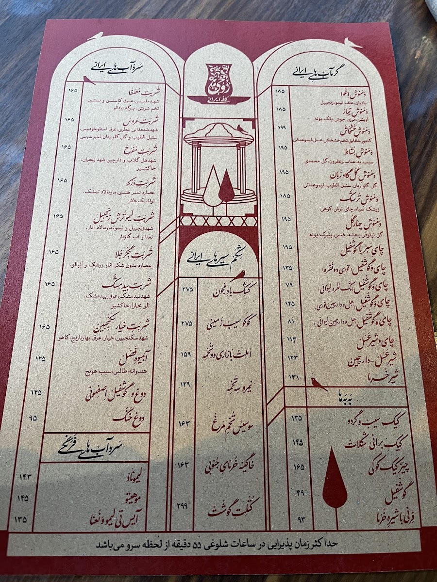 Rouhi Cafe Menu